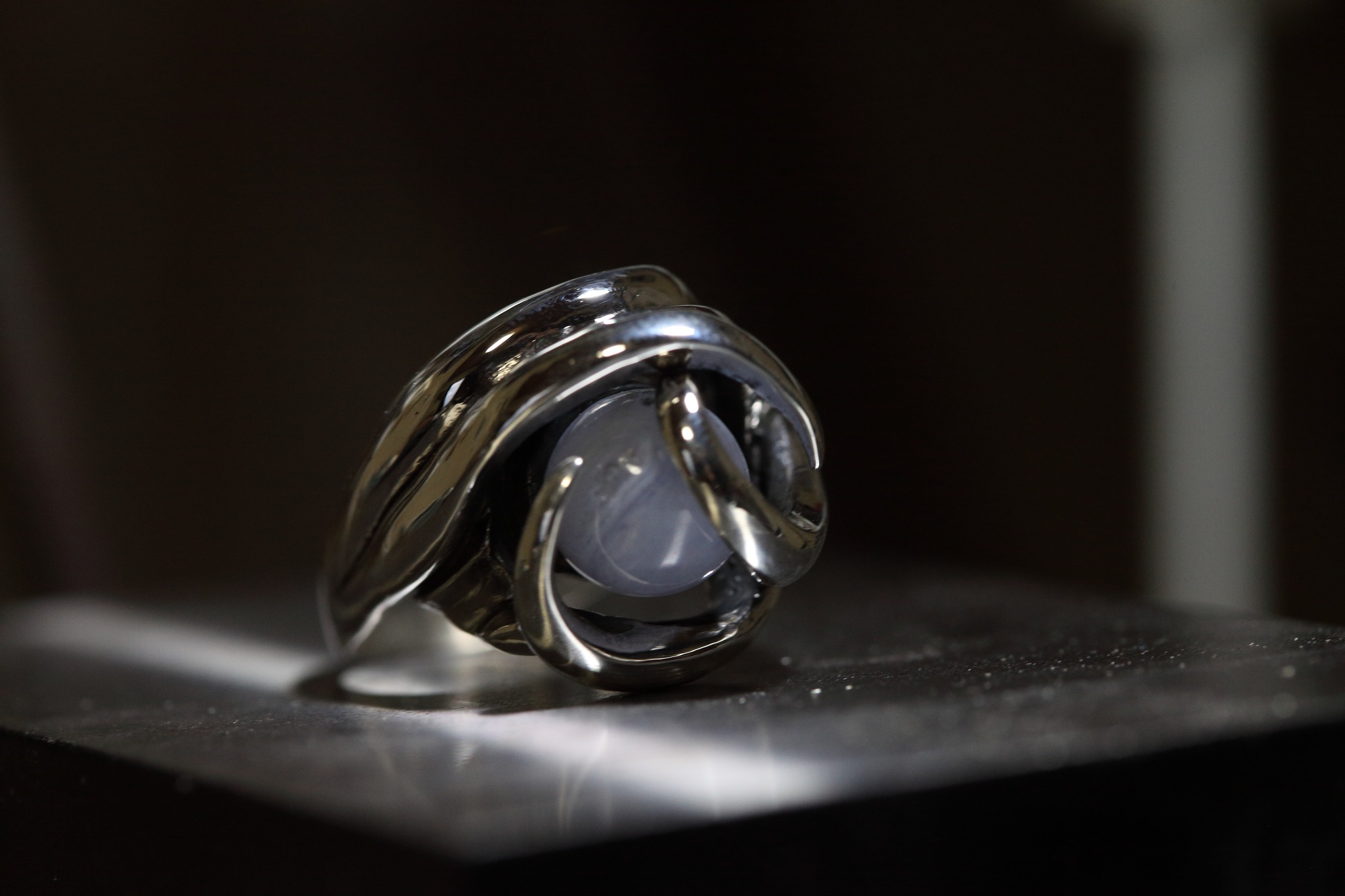 ベースはSL-R-04を使用し、石はブルーレースアゲートに変更。曲線の動きを変えて石が包まれる